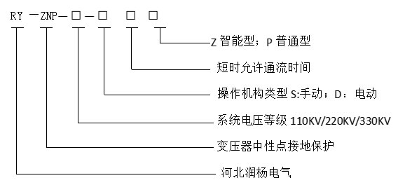 2、RY-ZNP变压器中性点接地成套装置有棒形间隙及球形间隙两种形式。